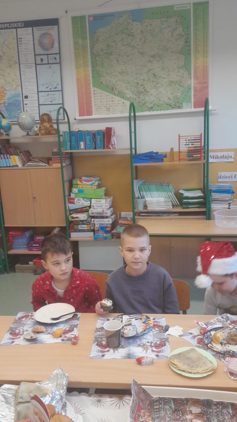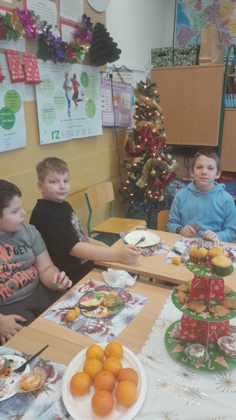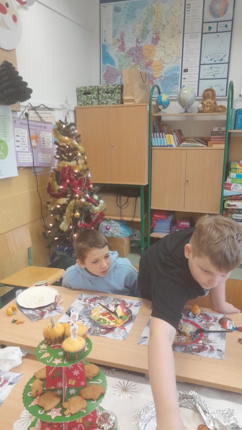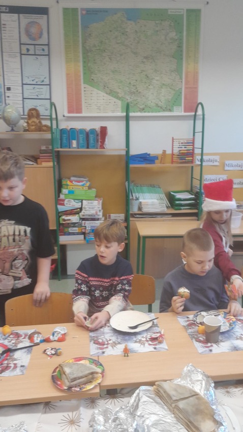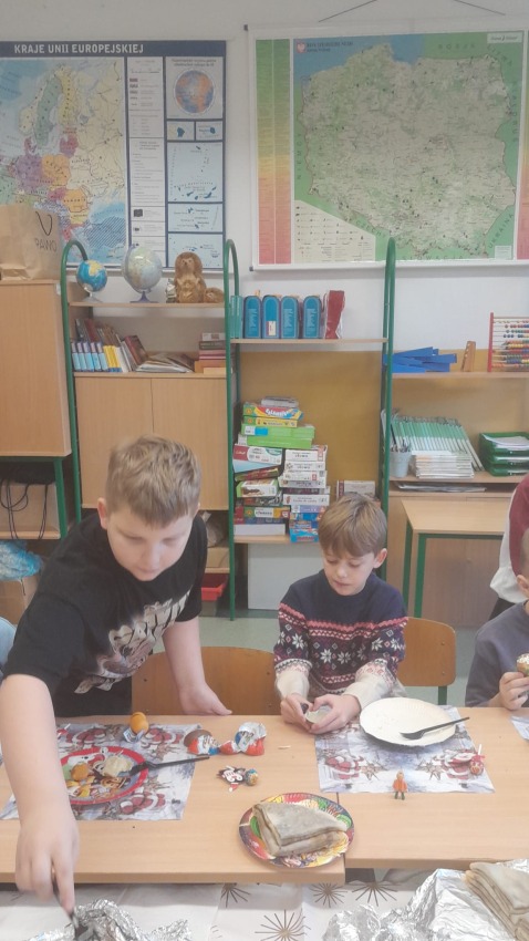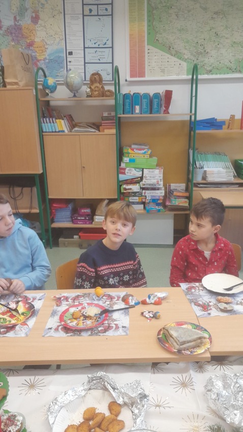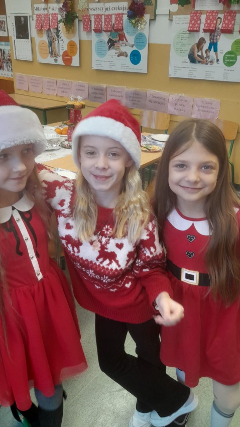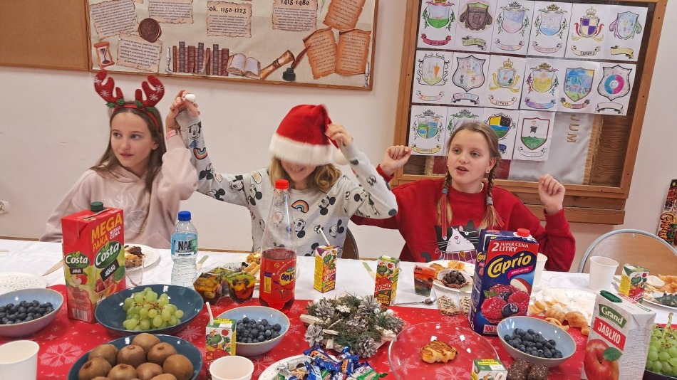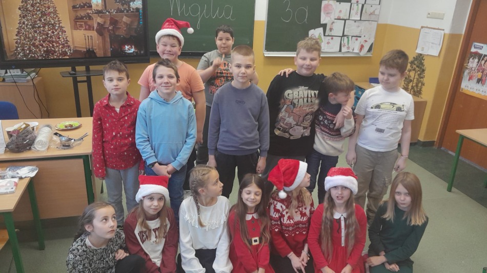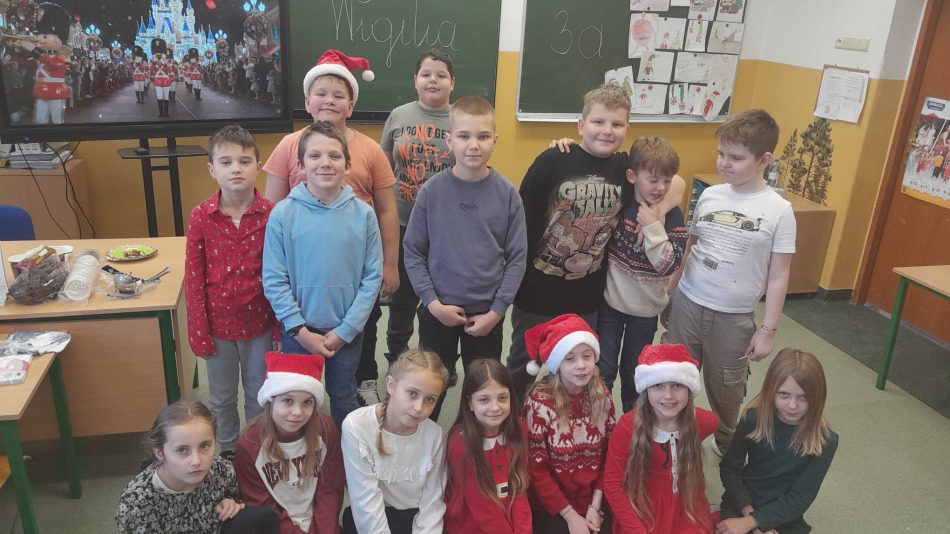 Dnia 19.12.2025 r. w klasie 3a odbyła się wigilia klasowa. Uczniowie przy pięknie ozdobionej choince dzielili się opłatkiem i składali sobie serdeczne życzenia. Rodzice przygotowali pyszne potrawy wigilijne, które wszyscy chętnie próbowali. Podczas spotkania wspólnie śpiewaliśmy kolędy. Nie zabrakło upominków od Świętego Mikołaja. Wigilia przebiegła w miłej, świątecznej atmosferze.