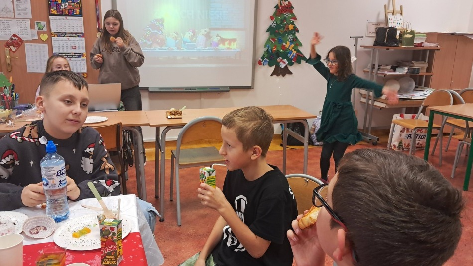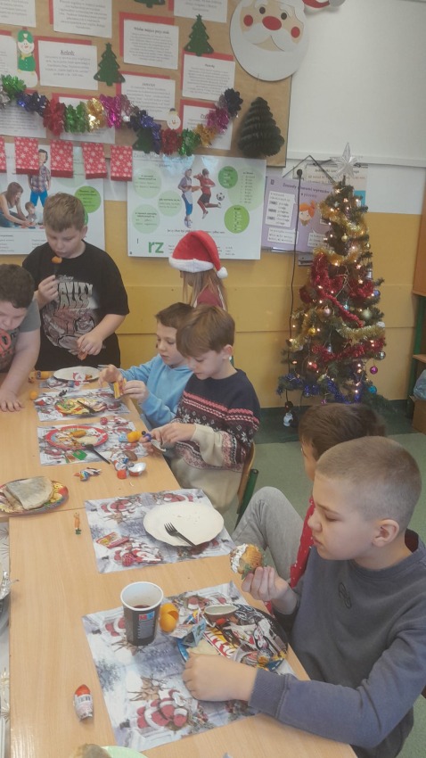 Podczas spotkania przedświątecznego uczniowie klasy 4a zamienili się w małych elfów i z wielkim zaangażowaniem tworzyli ozdoby choinkowe. Nie zabrakło też świątecznego poczęstunku, który znikał szybciej niż bombki z pudełka, oraz wspólnych zabaw wywołujących mnóstwo śmiechu. Spotkanie upłynęło w radosnej, pełnej pozytywnej energii atmosferze.