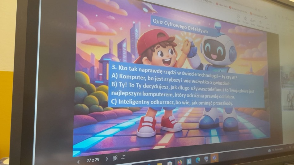W dniu 8 kwietnia 2026 r. odbyła się lekcja online pt. „Pułapki sztucznej inteligencji”, w której uczestniczyli uczniowie klas 3a i 3b. Celem zajęć było zapoznanie młodzieży z zagrożeniami oraz wyzwaniami związanymi z rozwojem i wykorzystaniem sztucznej inteligencji.