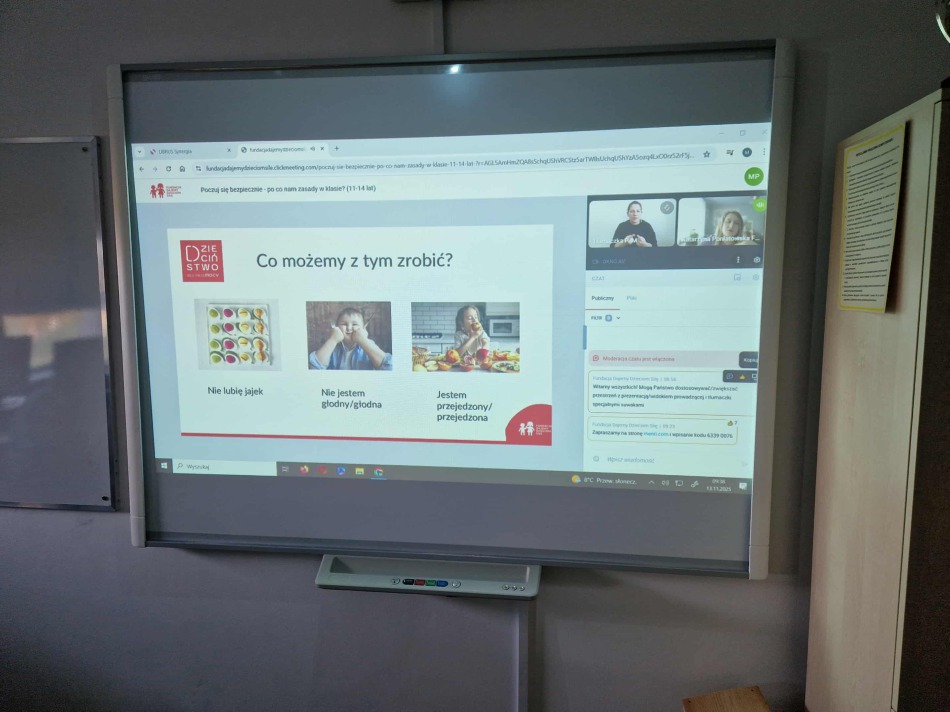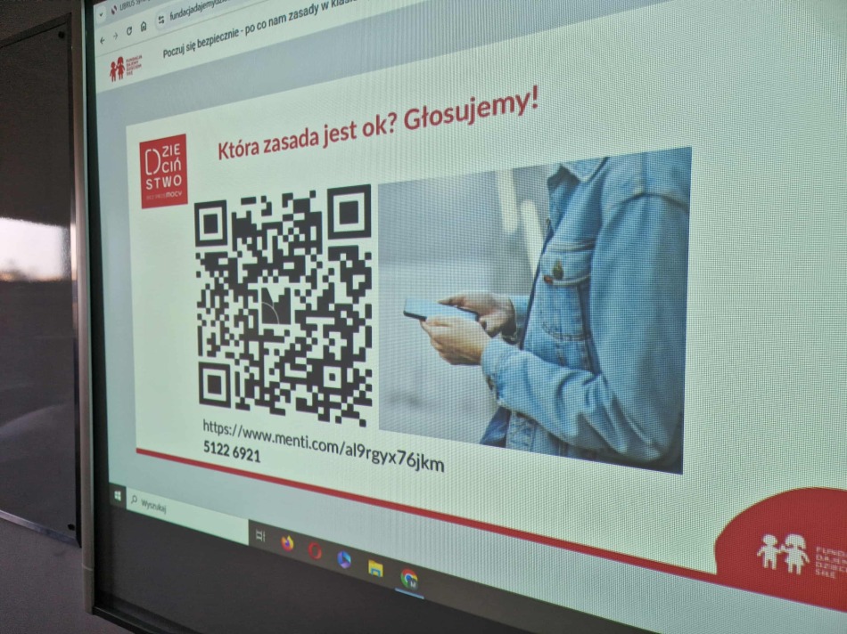 Zajęcia były interaktywne – młodzież oglądała krótkie filmy, brała udział w głosowaniach online i quizach. Na zakończenie klasy wybrały wspólną listę zasad sprzyjających atmosferze szacunku i współpracy.